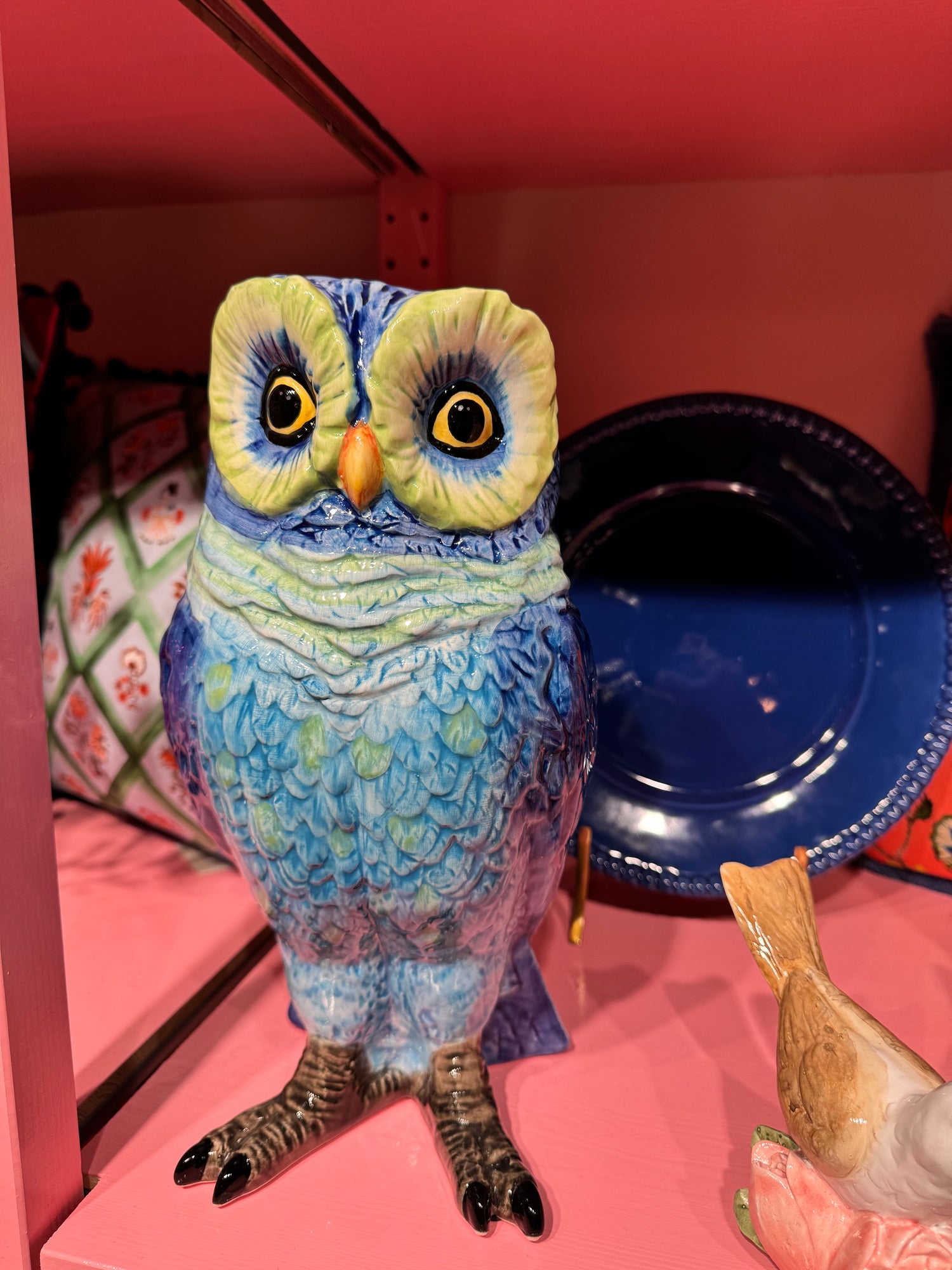 Papegøye lysestake i blått og hvit hos Karjolen!