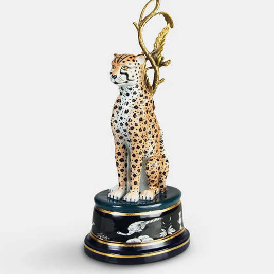 Lysestake leopard porselen 44 cm