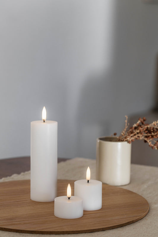Oppdag våre lekre kubbelys, kronelys og lyslykter med LED lys fra Uyuni Lightning, Børscompagniet og Werner Voss.