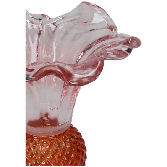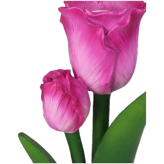Lysestake blå og hvit urne med rosa tulipan 27 cm