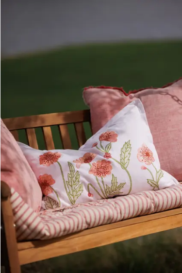 Putetrekk Velvet & Linen Embroidery Red 50x50 cm