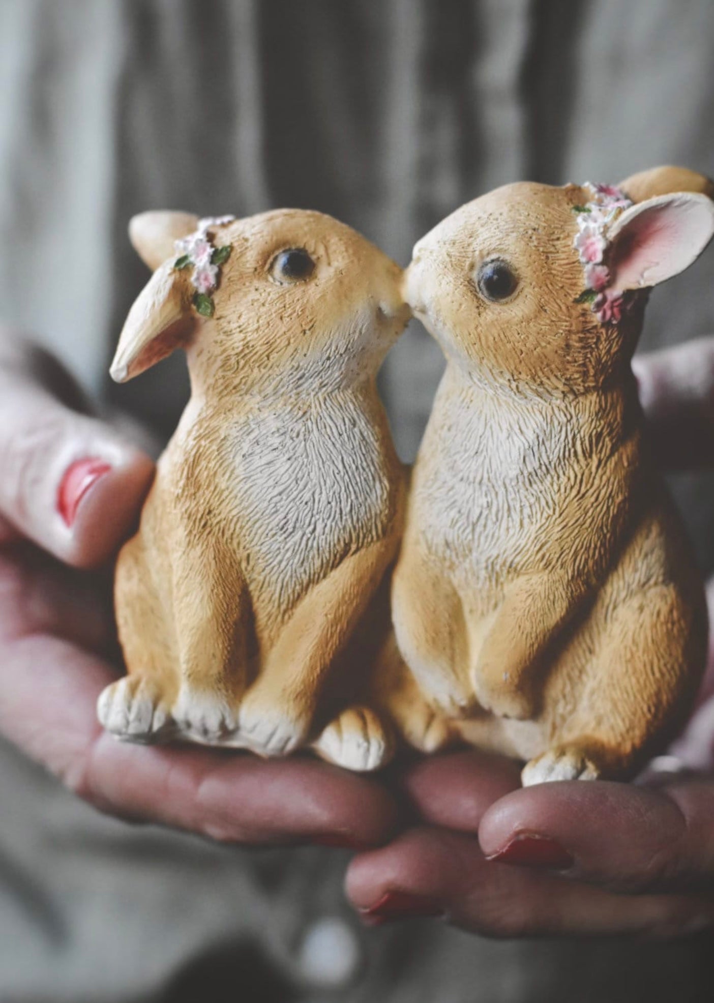 Sjarmerende kaniner som kysser på 10 cm høyde.