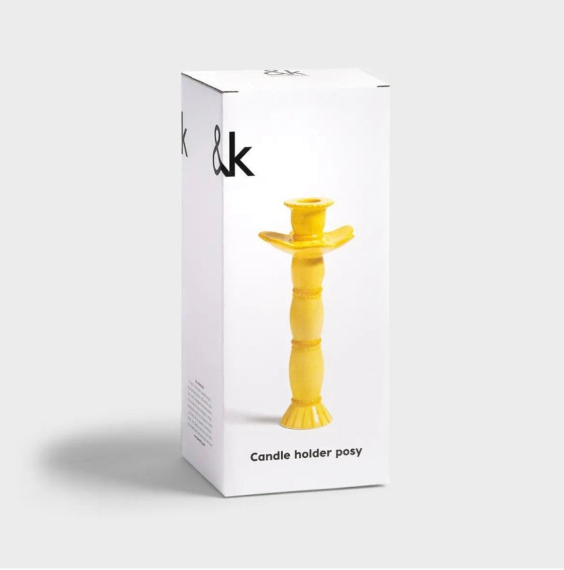 Den sjarmerende lysestaken heter Posy og er en fest for øynene. Den lekre lysestaken er unik og den gule fargen gjør den herlig oppløftende.