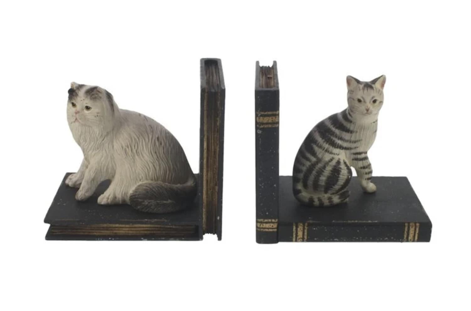 Unike og sjarmerende bokstøtter med katter i sett med 2 stk. Bokstøttene er håndlaget på Phillipinene og er fra vår fantastiske leverandør i Nederland. Bokstøttene er 28 x 10 x 13 cm.