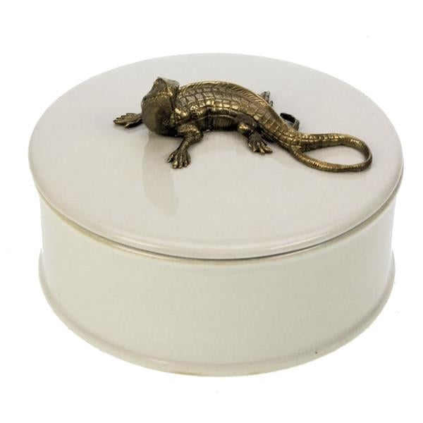 Vakker dekor boks i keramikk med salamander på lokket. Boksen er håndlaget og kommer fra vår leverandør Meander i Nederland.
