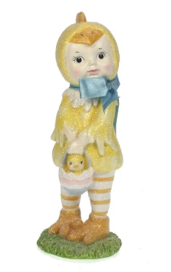 Sjamerende kylling barn med blå sløyfe og kurv på 22,5x13x9 cm fra vår fantastiske merke i Nederland.
