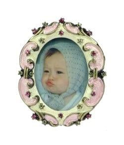 Vakker håndlaget bilderamme fra Nederland. Rammen er i emalje og er 3,5x4,5 cm med plass til bilde på 2x3 cm.