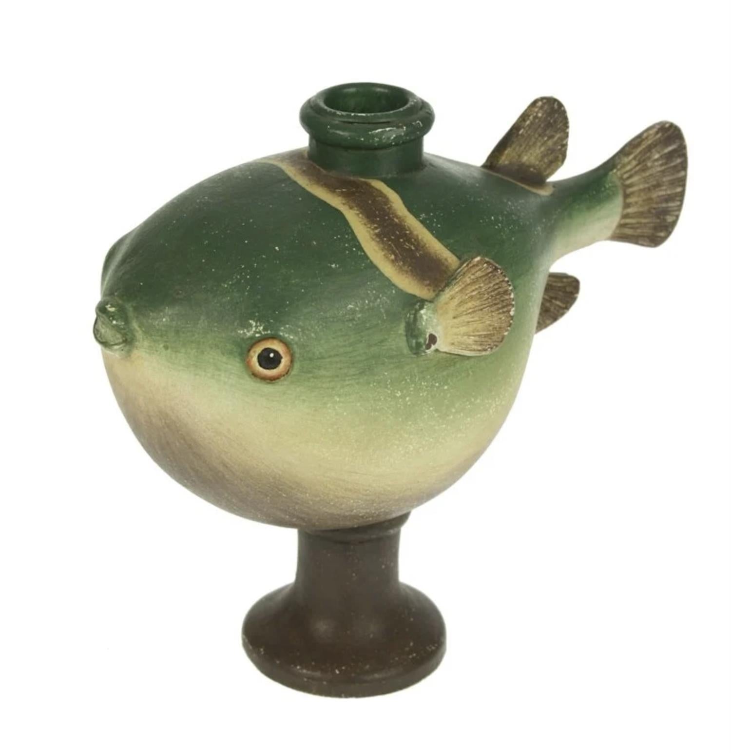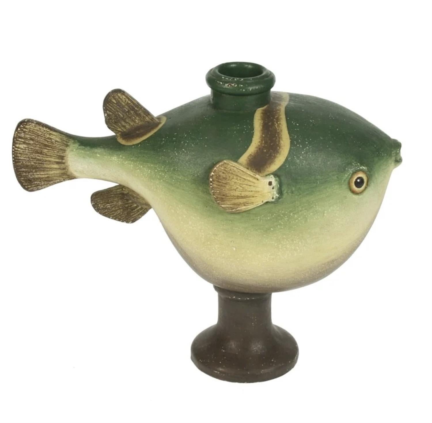 Fantastisk og unik lysestake med kulefisk i vakker grønnfarge fra vår dyktige leverandør i Nederland. Lysestaken er håndlaget på Philipinene. Denne herlige lysestaken passer hos deg som liker det som ikke alle har og hver lysestake er unik.