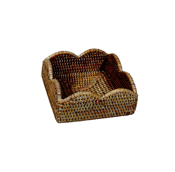 Elegant serviettholder til lunch servietter i rotting med scallop fra Caspari. Den er håndlaget i solid og varig rotting som er vevd og lakkert i Myanmar.