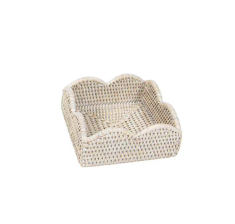 Elegant serviettholder til lunch servietter i rotting med scallops fra Caspari. Den er håndlaget i solid og varig rotting som er vevd og lakkert i Myanmar.