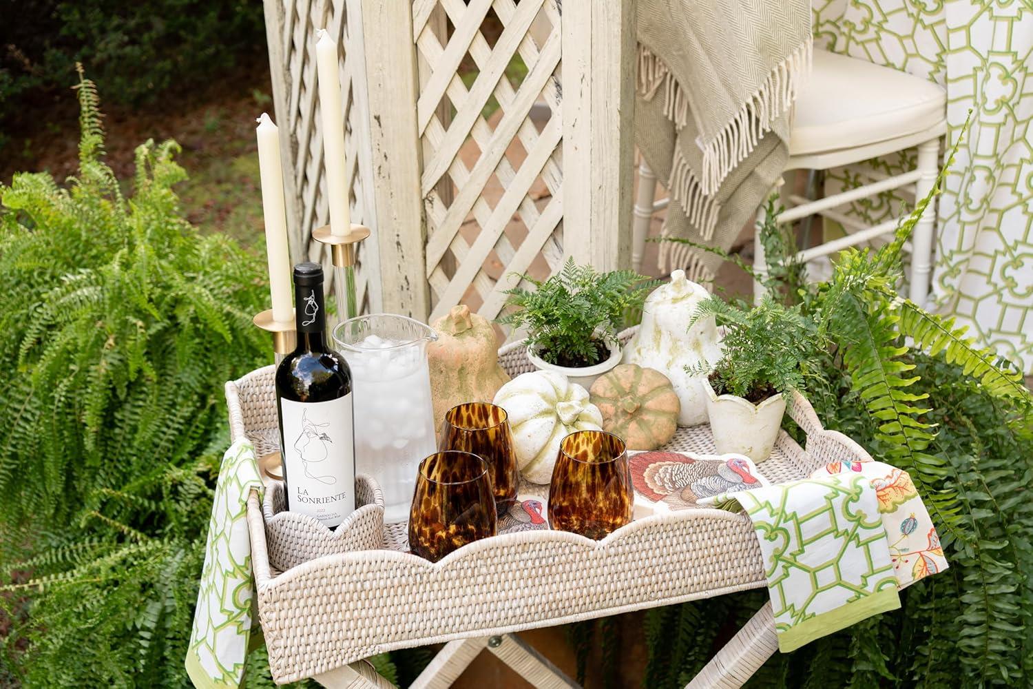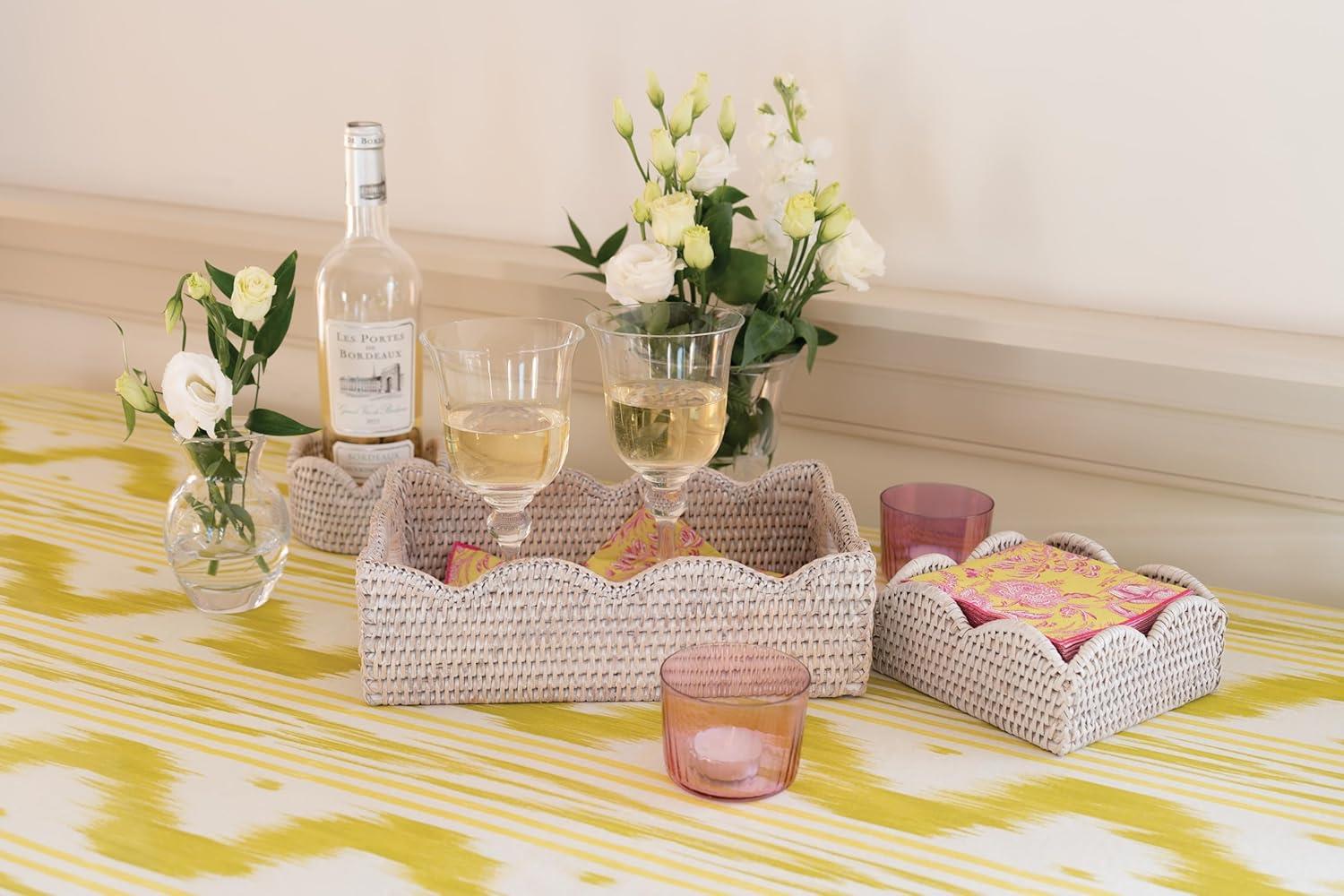 Elegant brett Rattan Scalloped Small Tray i kremfarget rotting fra Caspari. Brettet har lekre bølger kjent som scallop og er håndlaget i solid og varig rotting som er vevd og lakkert i Myanmar.