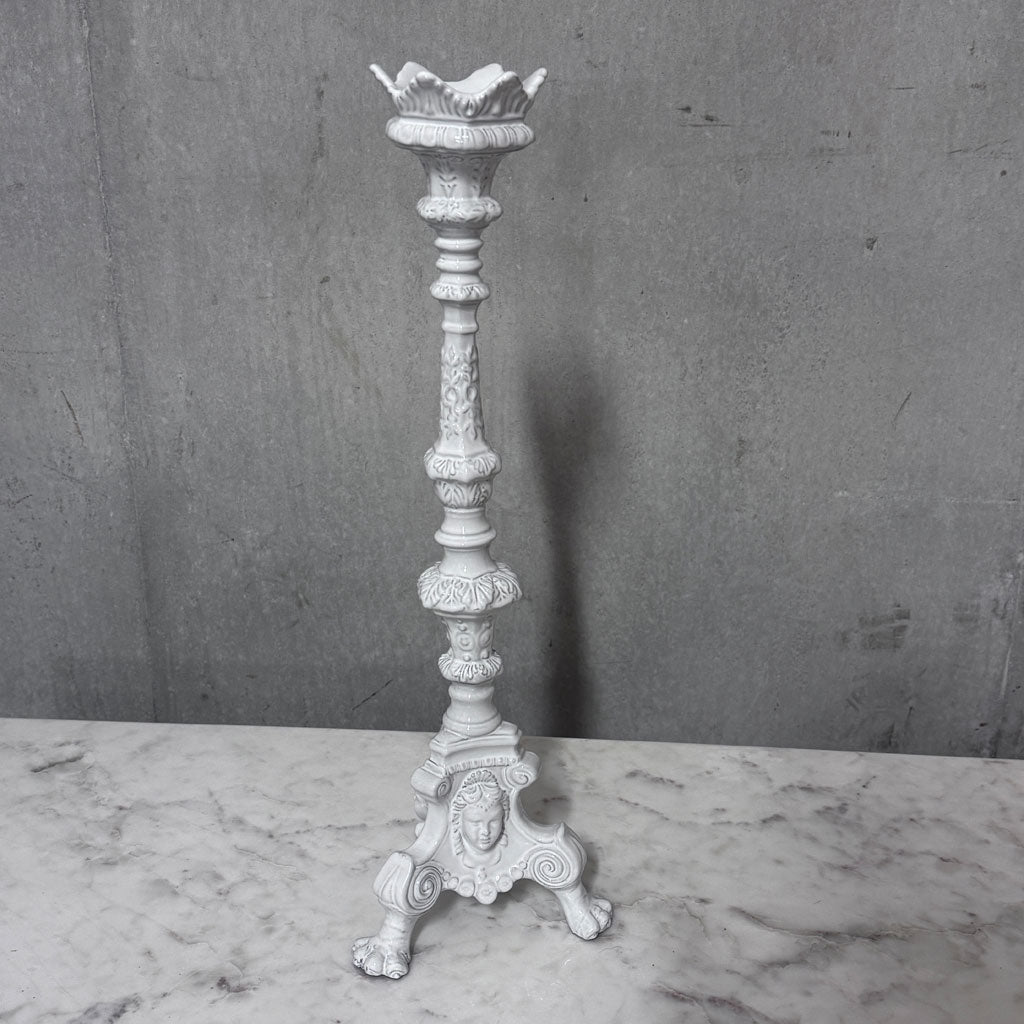 Elegant og unik lysestake på hele 51 cm i hvit keramikk fra svenske Frejas Boning. Lysestaken er håndlaget i India. En unikt tilskudd til ethvert hjem og interiør.