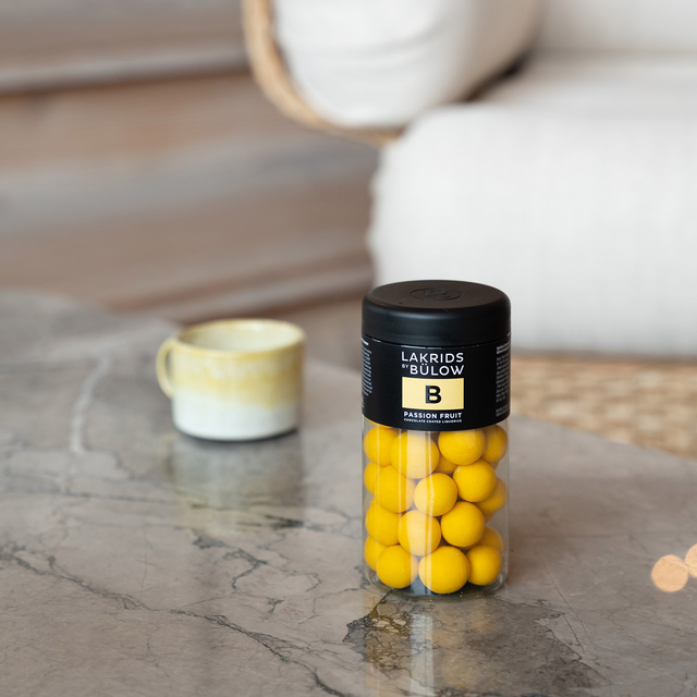 Søt lakris ikledd nøye utvalgt hvit sjokolade og forførende pasjonsfrukt. Sjokoladens sødme, pasjonsfruktens syrlighet og lakrisens evne til å forene smaksopplevelsene gir den perfekte smaken. Søtt, syrlig og suverent – dekket av et delikat, sprøtt sukkerskall.
