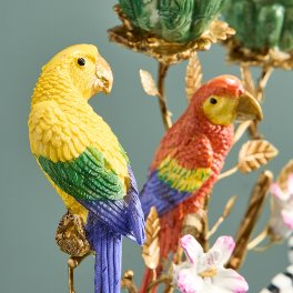 Herlig eksotisk lysestake med zebra og papegøye til 2 kronelys fra Werner Voss.