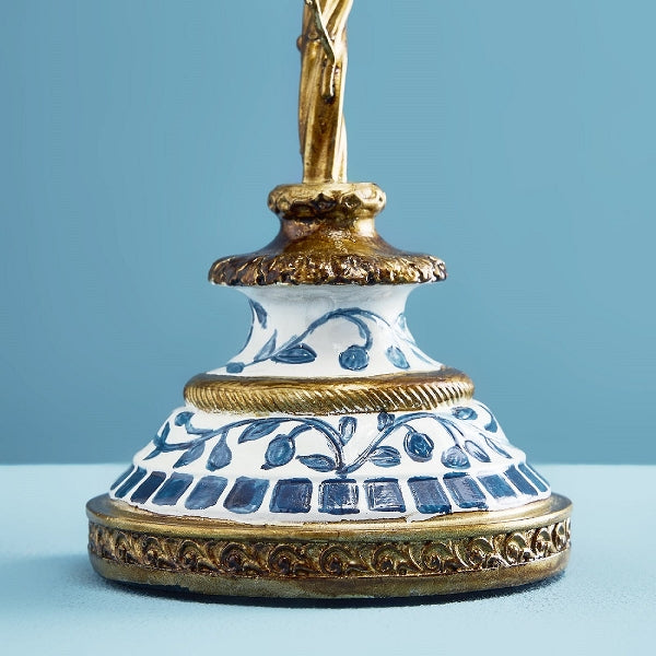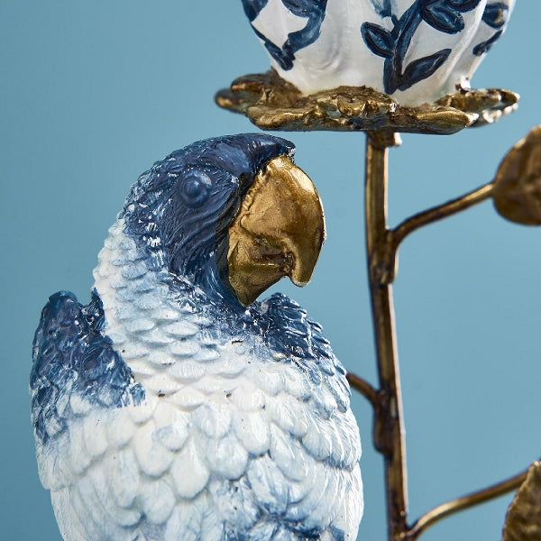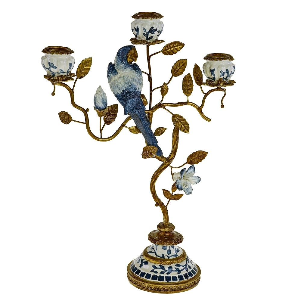 Herlig papegøye lysestake i klassiskse blå og hvitt på 31,5 cm til 3 kronelys fra Werner Voss.