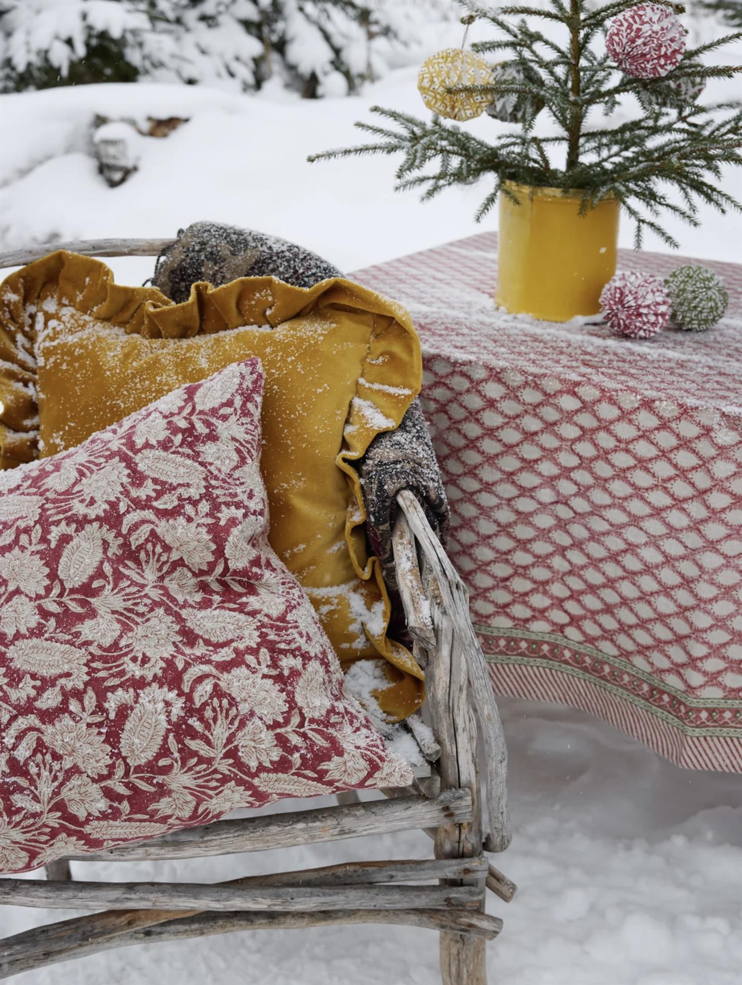 Elegant putetrekk som er blokktrykket for hånd i India i orientalt mønster. Putetrekket er i 100 % lin og kommer fra svenske Chamois. Innmat selges separat.