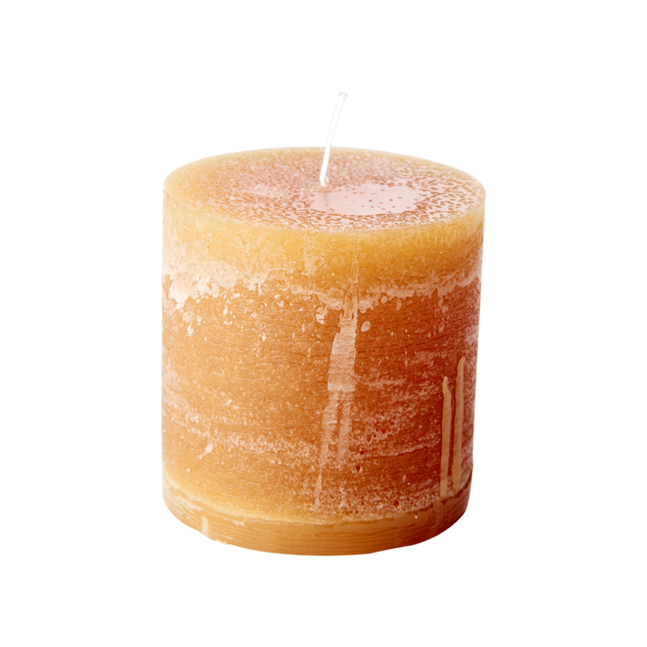 Gjennomfarget kubbelys Cote Nord fra Affari of Sweden i fargen Ocra. Lyset er håndlaget i Sverige og er i 100 % parafin. Det brenner ca. 60 timer.