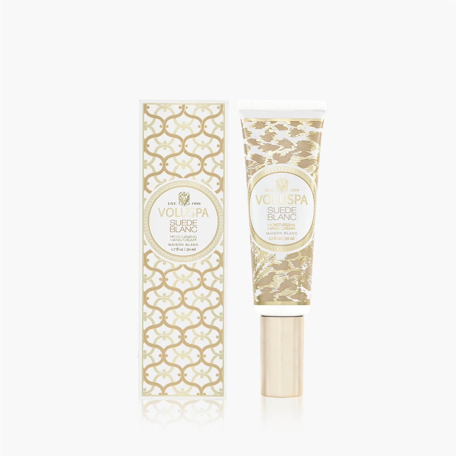 Delikat håndkrem fra Voluspa i lekker tube som er lettvin å ha i veska. En hyggelig gave til deg selv eller andre. Håndkremen har duft av semsket skinn, rav og sedertre.