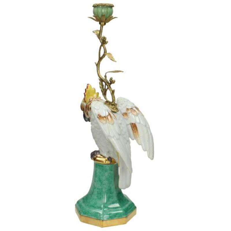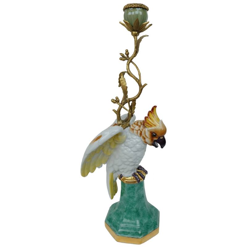 Den vakre lysestaken med cocatoo er i en delikat blå farge i keramikk. Lysestaken er håndlaget i en unik design formet som en cockatoo fugl med vakre detaljer og livlige farger. Lysestaken tilfører en ekstotisk og unik atmosfære til rommet
