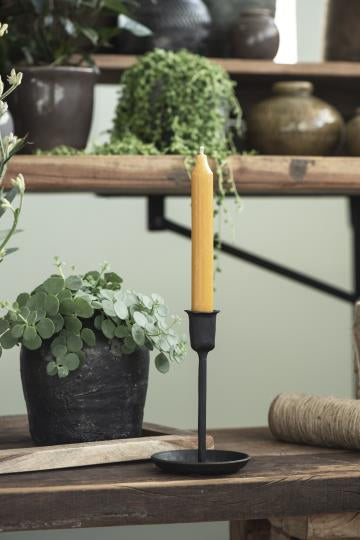 Kronelyset i karri på 18 cm fra Ib Laursen er et rustikk lys som er kjent for sin unike tekstur og vakre farger som skaper et naturlig, men elegant utseende.