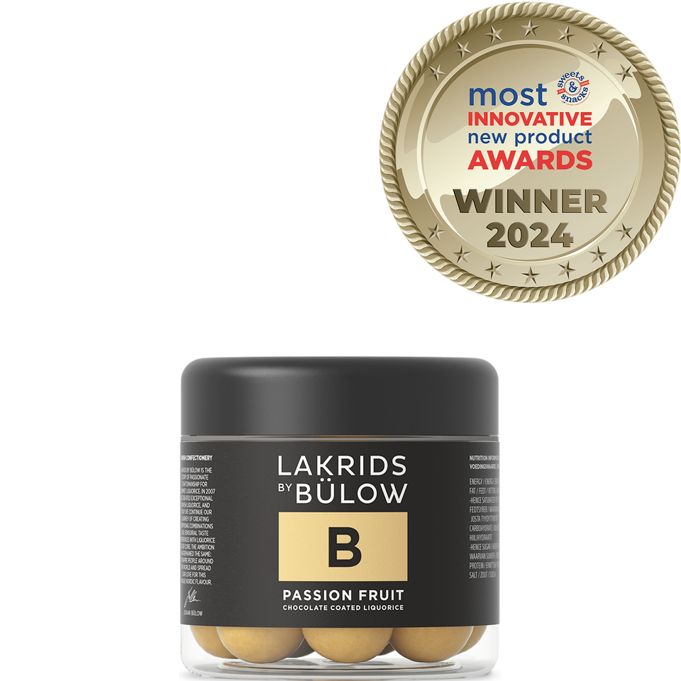 Søt lakris ikledd nøye utvalgt hvit sjokolade og forførende pasjonsfrukt. Sjokoladens sødme, pasjonsfruktens syrlighet og lakrisens evne til å forene smaksopplevelsene gir den perfekte smaken. Søtt, syrlig og suverent – dekket av et delikat, sprøtt sukkerskall.
