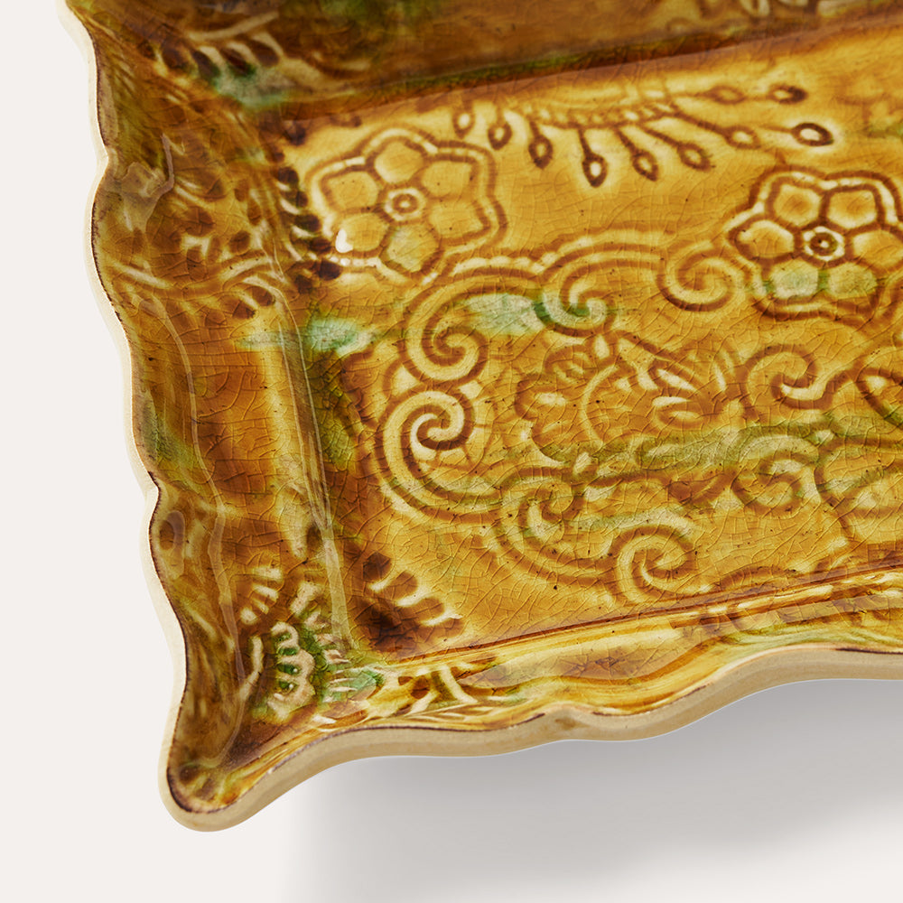 Den vakre asjetten kommer fra Sthåls vakre serie Arabesque. Navnet arabesk kommer fra fransk og betyr arabisk. Det er også et spesielt kunstnerisk uttrykk med sløyfemønstre av planter, blader og bekker. Alle delene er produsert i hvitt steingods leire som er brent ved veldig høy temperatur, slik at keramikken blir holdbar. De vakre glasurene er nøye valgt for å få maten til å se appetittvekkende ut.