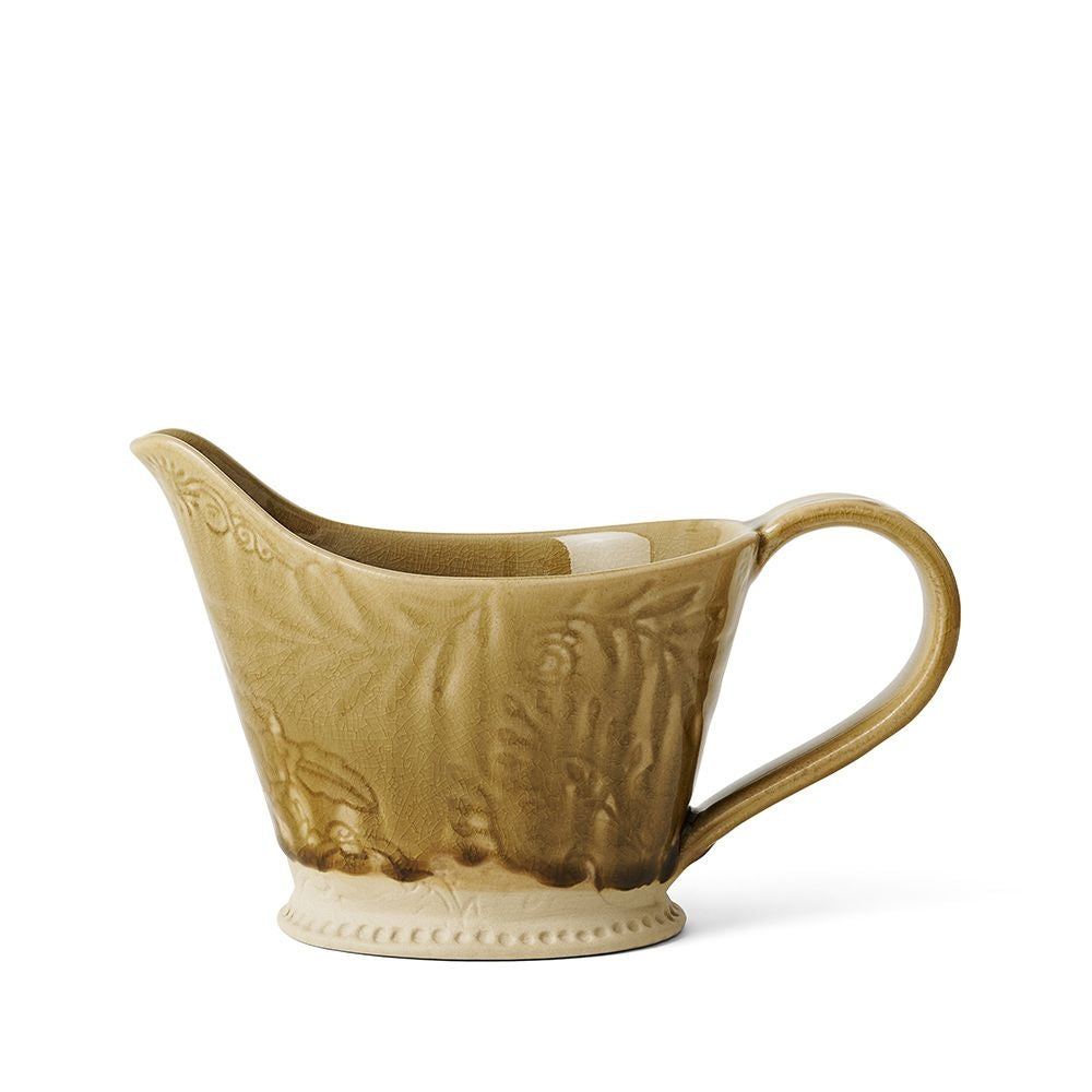 Det elegante sausenebbet kommer fra Sthåls vakre serie Arabesque. Navnet arabesk kommer fra fransk og betyr arabisk. Det er også et spesielt kunstnerisk uttrykk med sløyfemønstre av planter, blader og bekker. Alle delene er produsert i hvitt steingods leire som er brent ved veldig høy temperatur, slik at keramikken blir holdbar. De vakre glasurene er nøye valgt for å få maten til å se appetittvekkende ut.