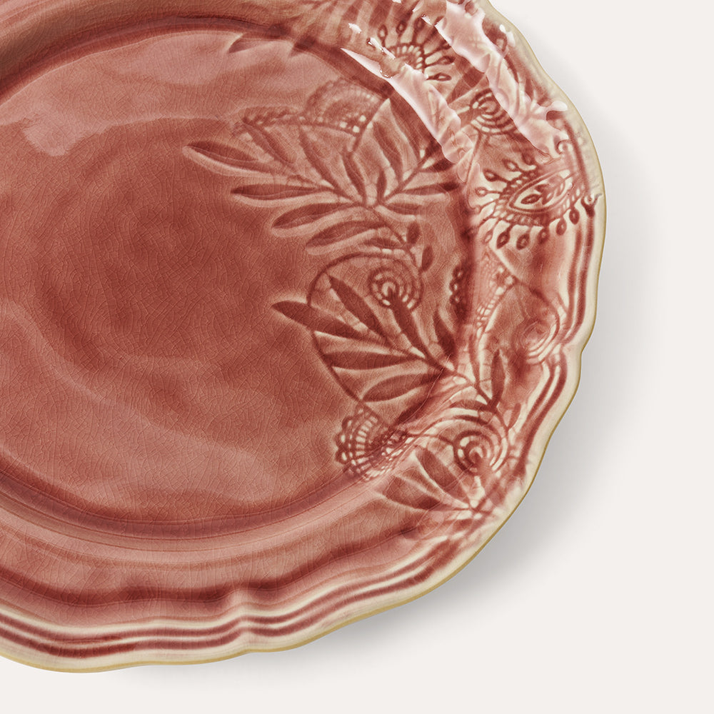 Den vakre tallerken på 28 cm kommer fra Sthåls vakre serie Arabesque. Navnet arabesk kommer fra fransk og betyr arabisk. Det er også et spesielt kunstnerisk uttrykk med sløyfemønstre av planter, blader og bekker. Alle delene er produsert i hvitt steingods leire som er brent ved veldig høy temperatur, slik at keramikken blir holdbar. De vakre glasurene er nøye valgt for å få maten til å se appetittvekkende ut.
