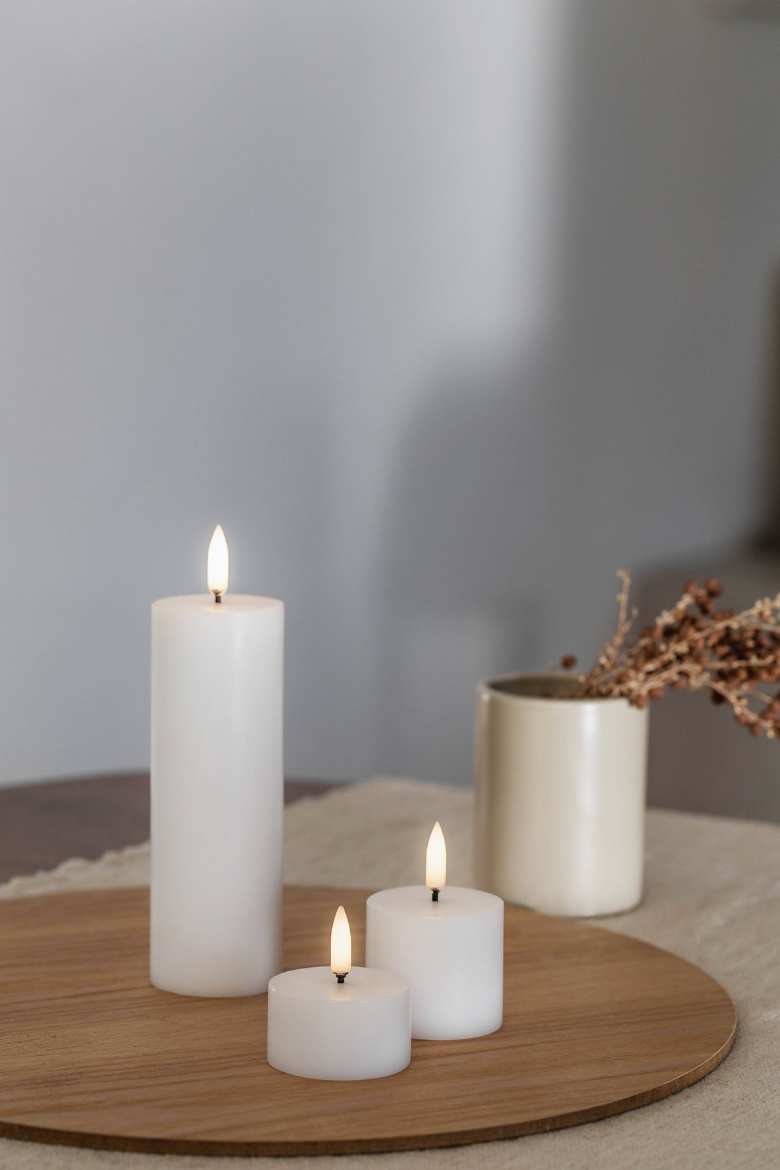 Det unike LED lyset fra Uyuni er inspirert av Salar de Uyuni i Bolivia. Det som gjør lyset spesielt og skiller det fra andre LED-lys er 3D flammen. LED-lyset har en tidløs estetikk, en unik 3D-flamme og praktiske funksjoner som fjernkontroll og justerbare timerinnstillinger (4, 6, 8 eller 10 timer). De er håndlaget med ekte voks, smelter ikke, er trygge, og lar deg nyte sjarmen ved levende lys uten bekymringer.