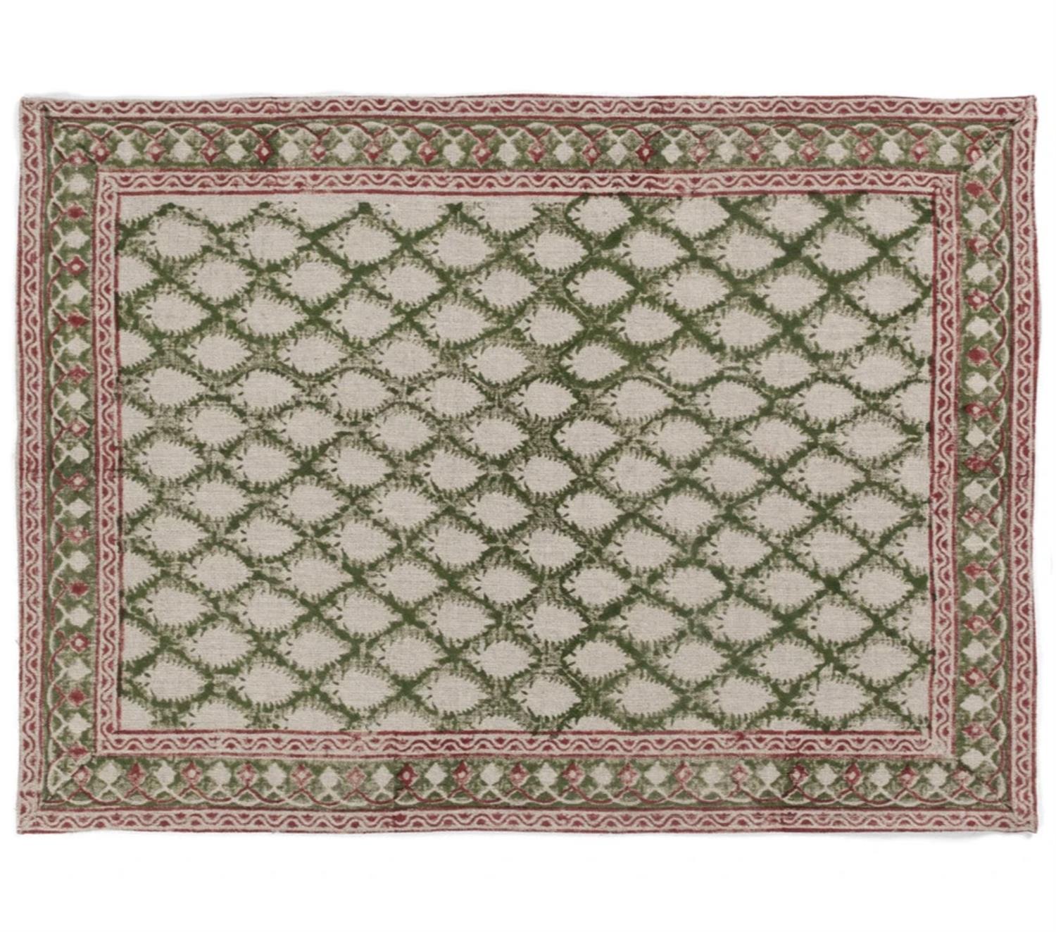 Elegant spisebrikke i lin fra svenske Chamois. Mønsteret er trykt for hånd med tradisjonell indisk blokktrykkteknikk som gjør hver bordbrikke unik, og gir et levende, harmonisk og dekorativt uttrykk.