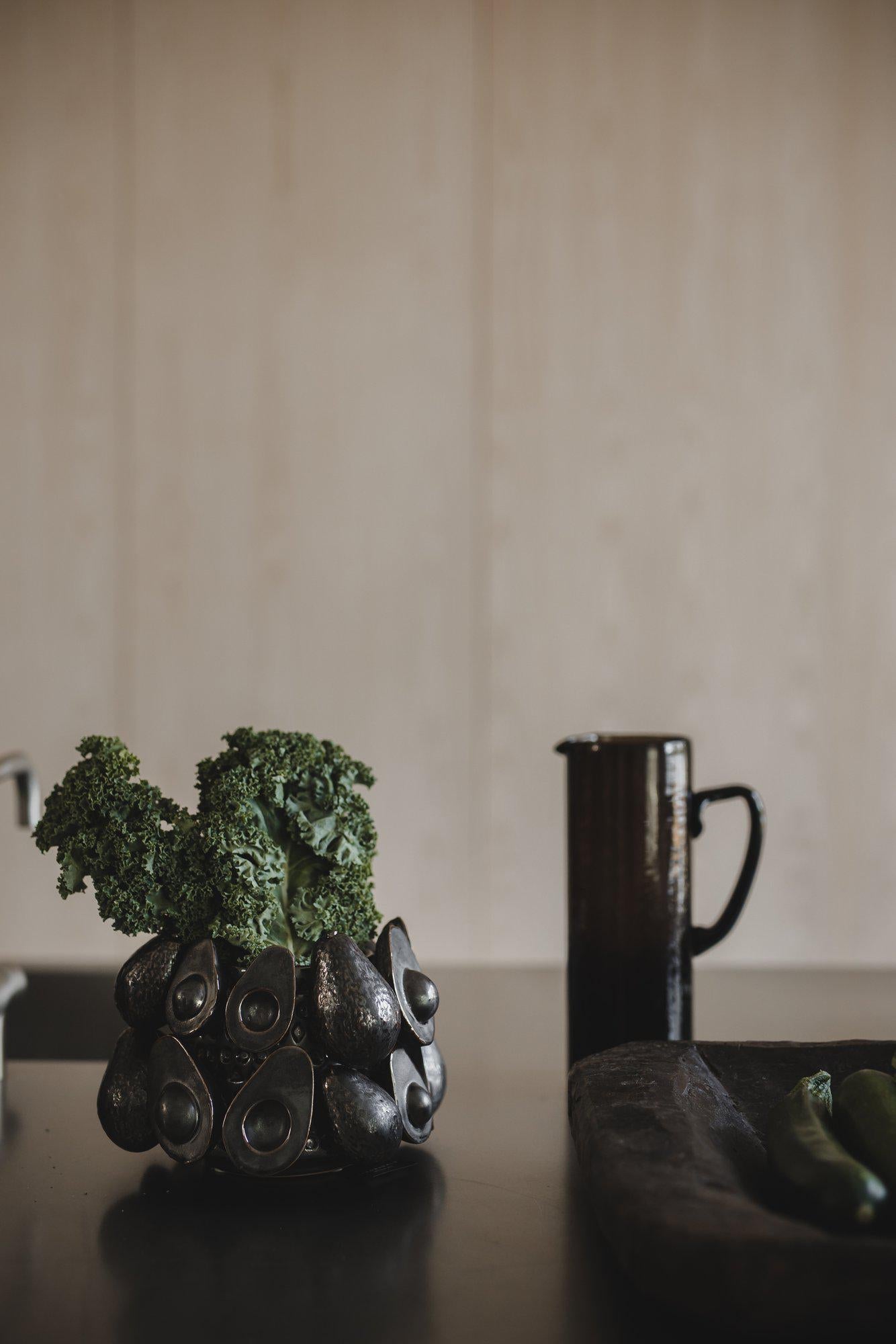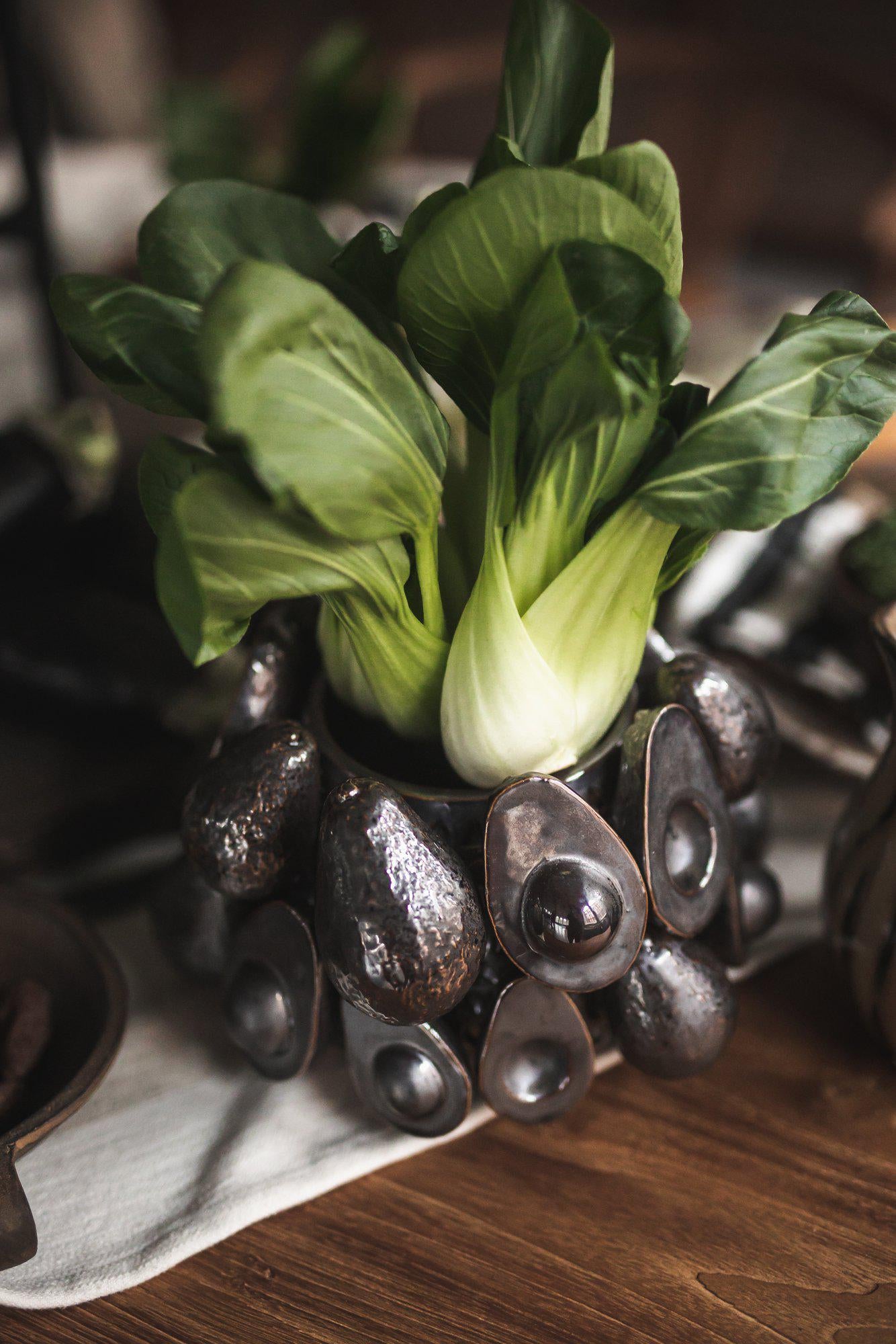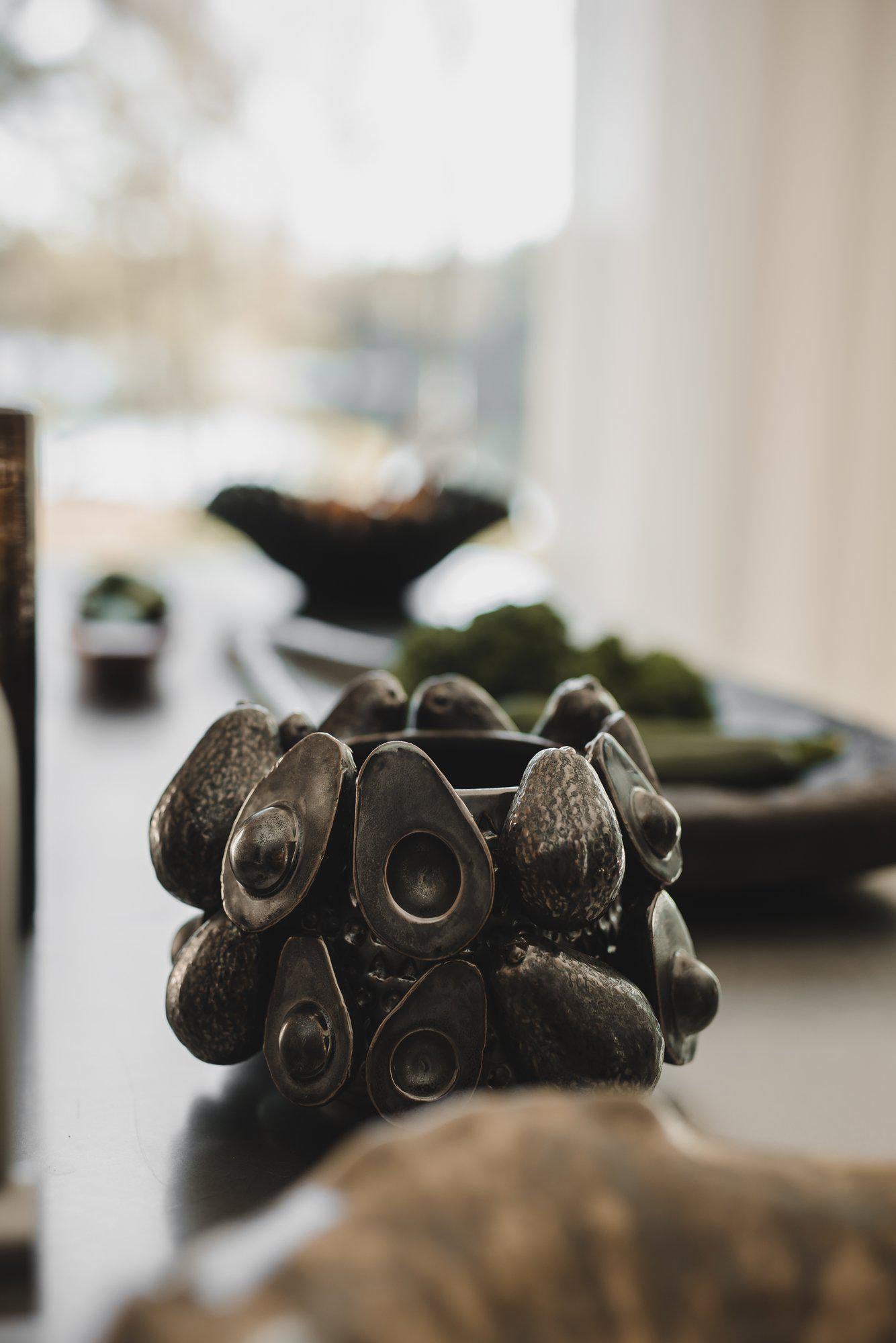 Den unike Avocado krukken fra Jakobsdal har et lekent utseende. Krukken er i steingods og den brune fargen gir den en jordnær og tidløs følelse.
