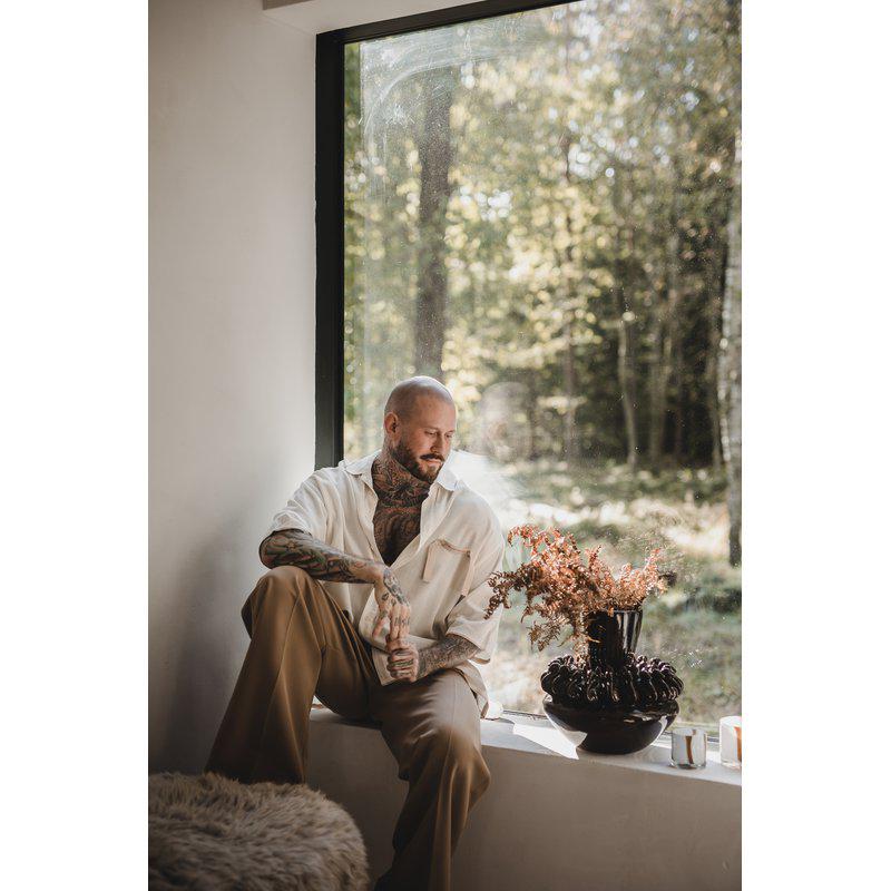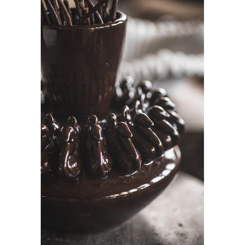 Den unike Amaia vasen fra Jakobsdals har et lekent utseende. Vasen er i steingods og den brune fargen gir den en jordnær og tidløs følelse.