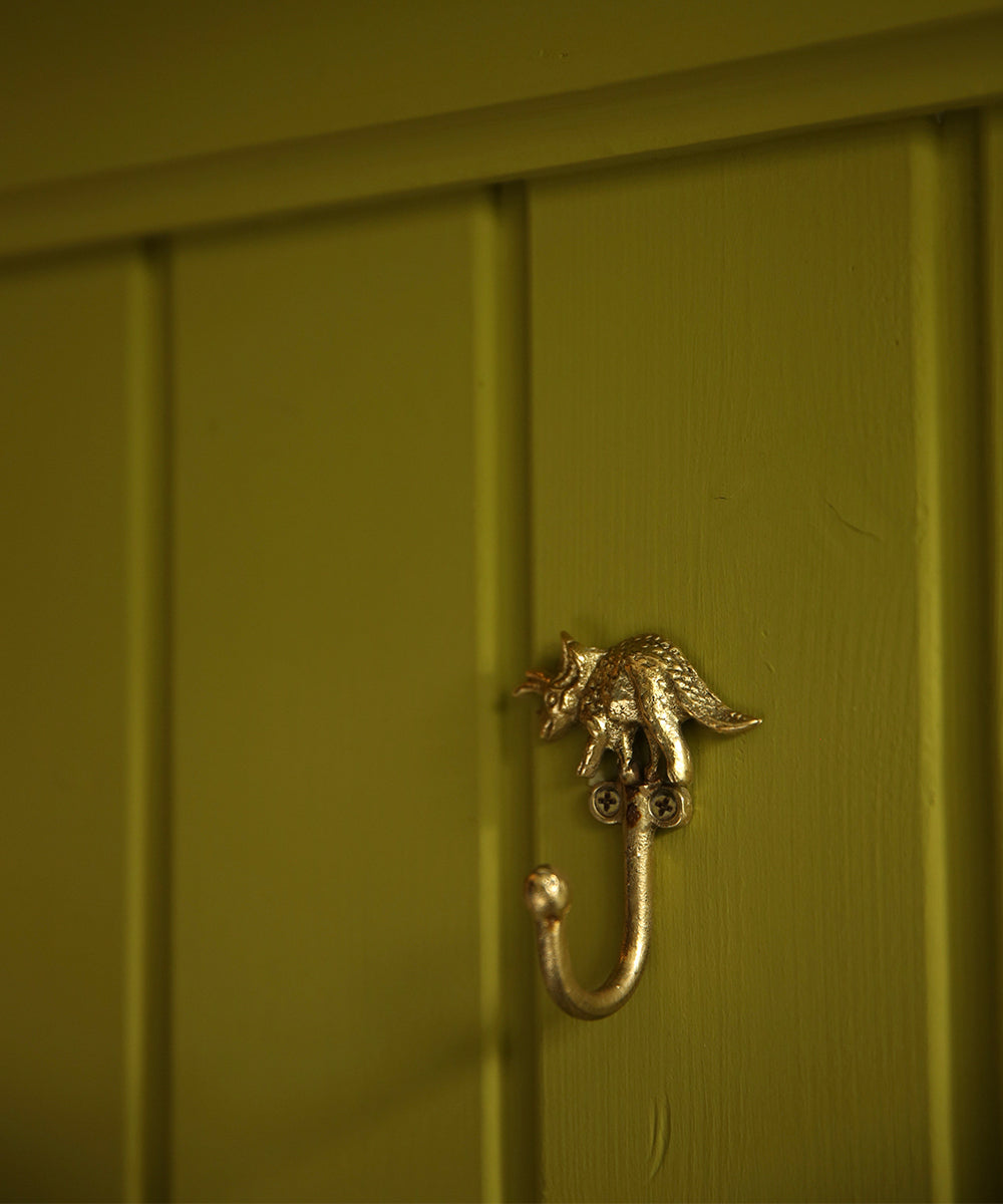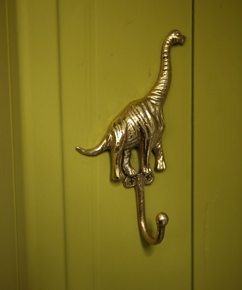 Oppdag de unike Dean knaggene som er håndlaget i India i resirkulert messing. Formet som en sjarmerende dinosaur tilfører knaggene et sjarmerende og unikt element til interiøret.