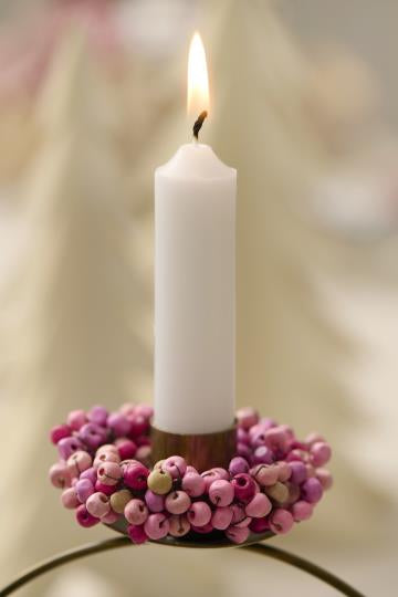 Vakker håndlaget lysmansjett til kronelys med rosa treperler.