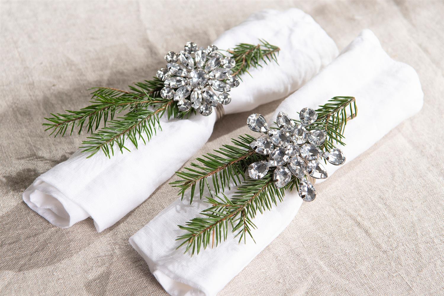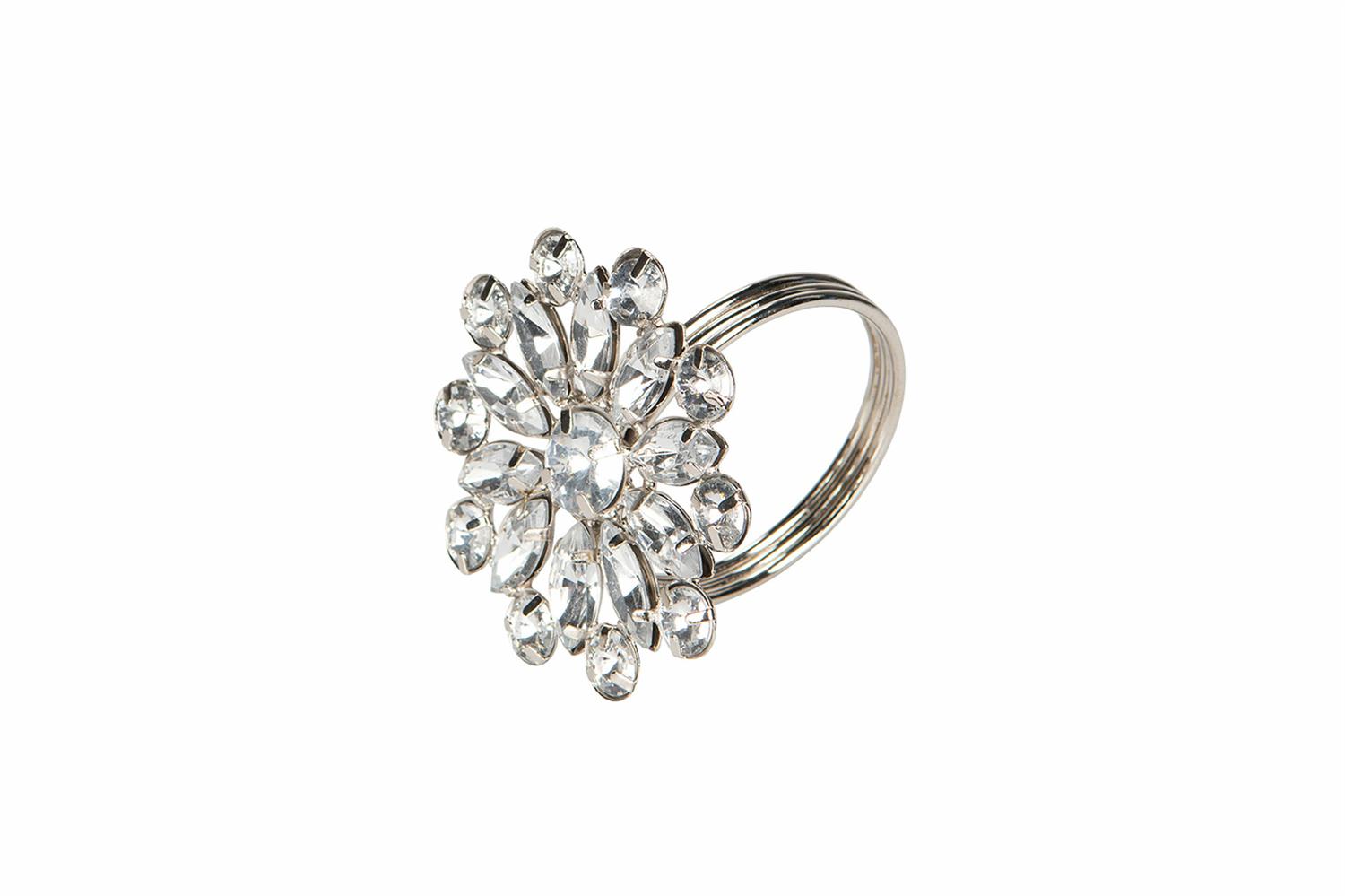 Delikat serviettring Claudia fra A Lot Decoration i sølv look med bling. Serviettringen er i metall med fine glass detaljer.