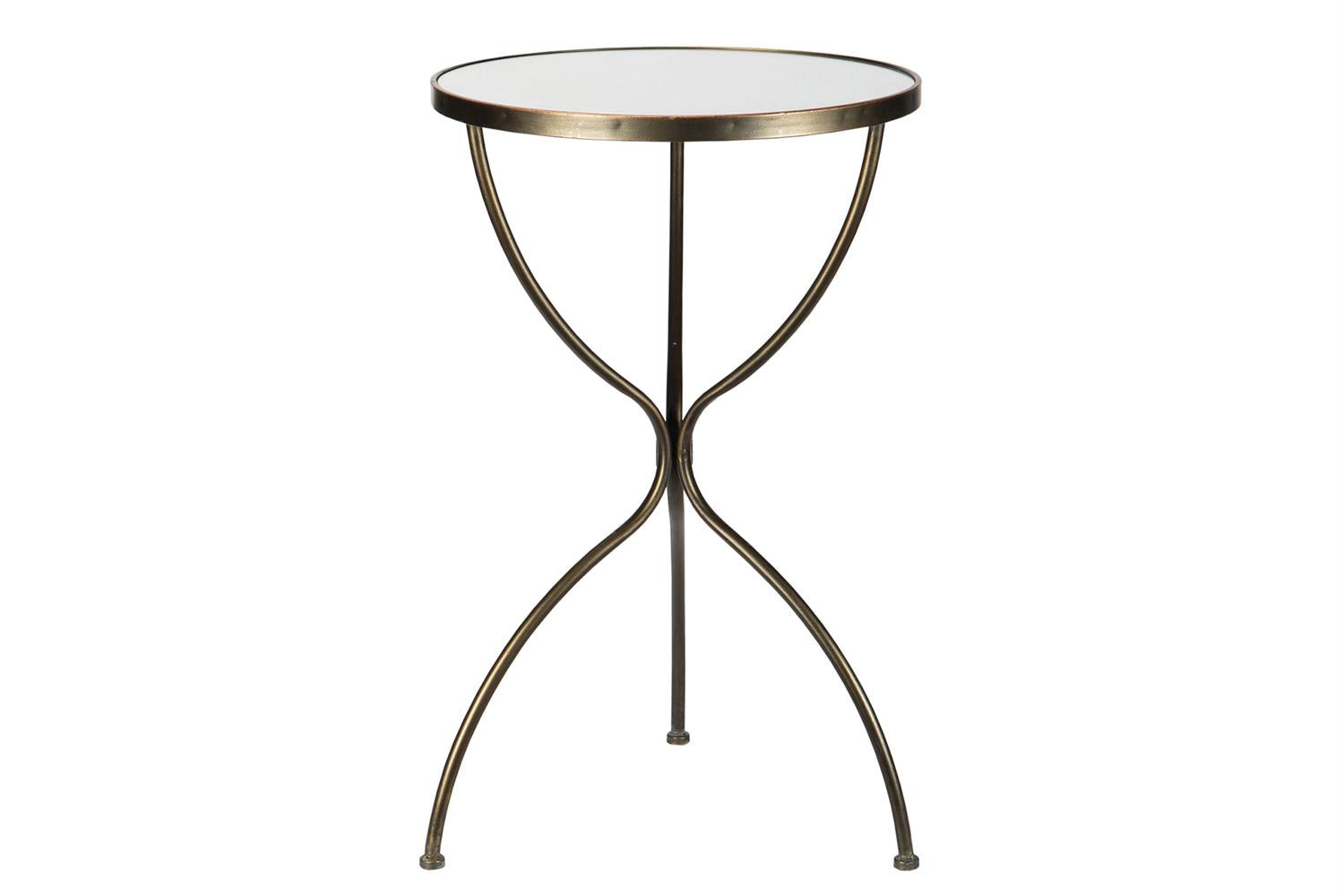 Bordet har en diameter på 30 cm og en høyde på 50 cm, noe som gjør det til en ideell løsning som sidebord eller pidestall for å vise frem dekorative gjenstander, planter eller lamper. Den antikk messingfinishen gir en luksuriøs følelse, mens speiloverflaten tilfører et moderne preg og reflekterer lyset vakkert i rommet.