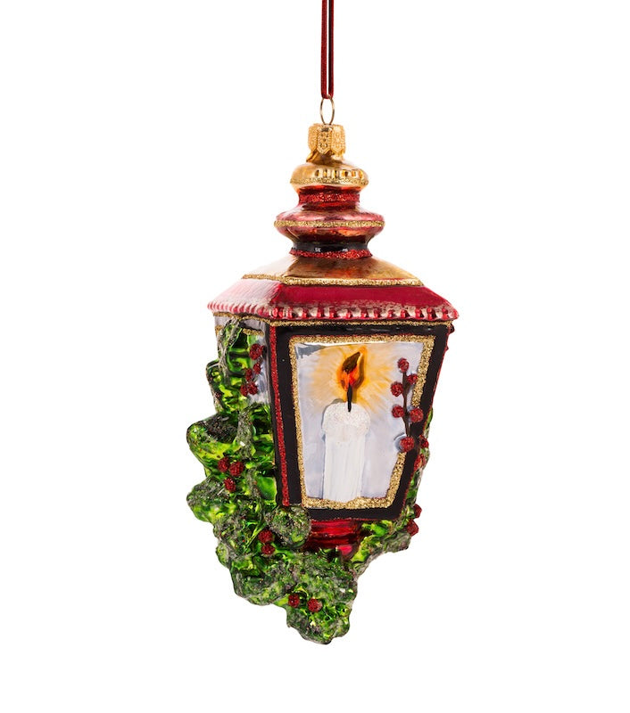 En lanterne med lys og juletre vil være et utmerket tilskudd til julekolleksjonen din. Den er nydelig og håndmalt i rødt og hvitt med grønne og gull aksenter.