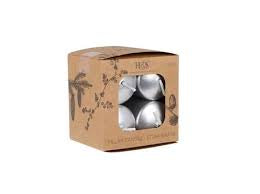 Dekorative små kubbelys i sølv med metall finish på 4x6 cm. Det er 4 lys i pakken.