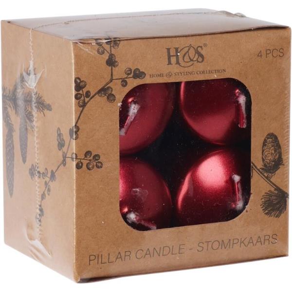 Dekorative små kubbelys i rød med metall finish på 4x6 cm. Det er 4 lys i pakken.