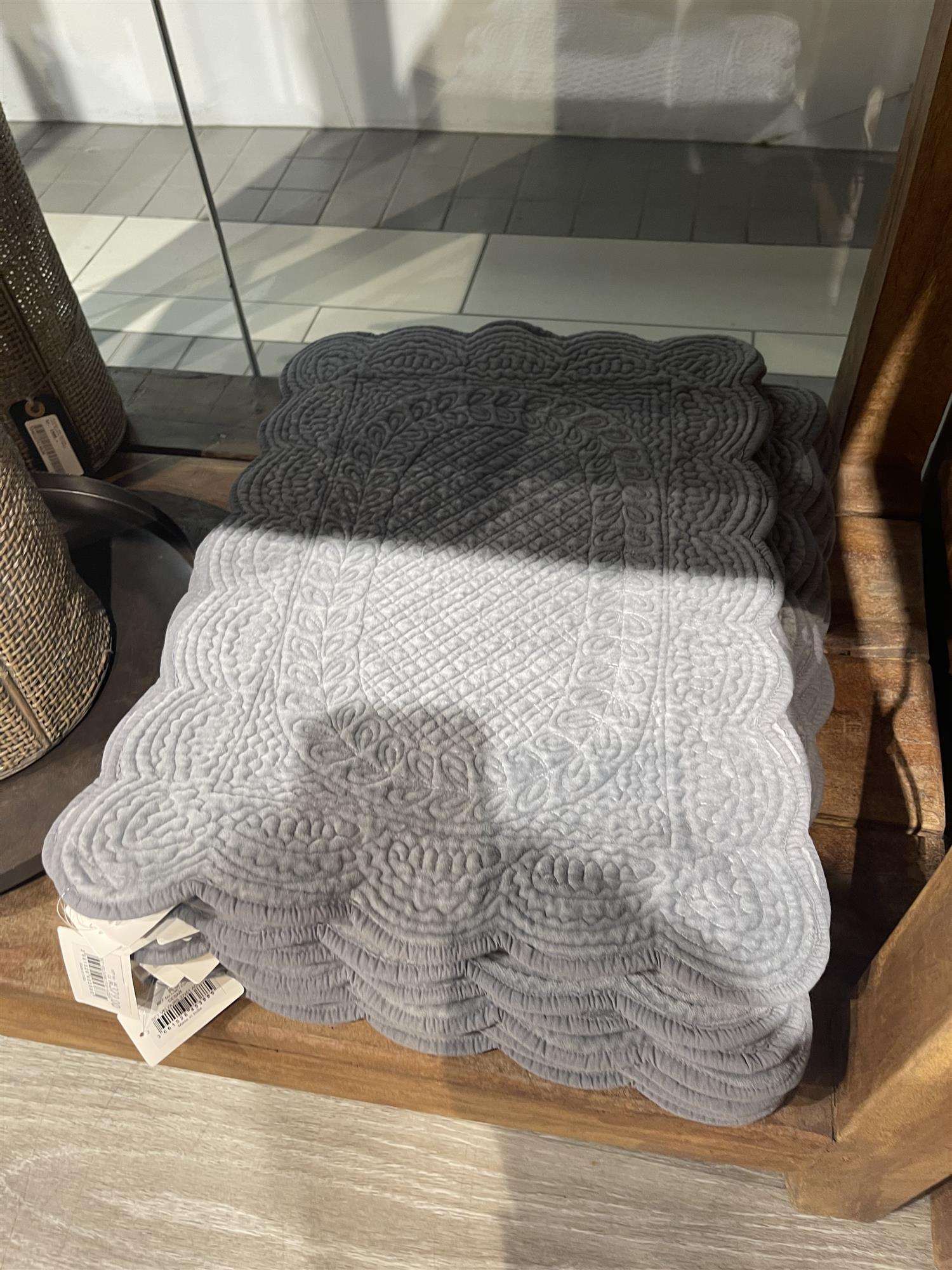 Avlang spisebrikke med quiltet mønster.