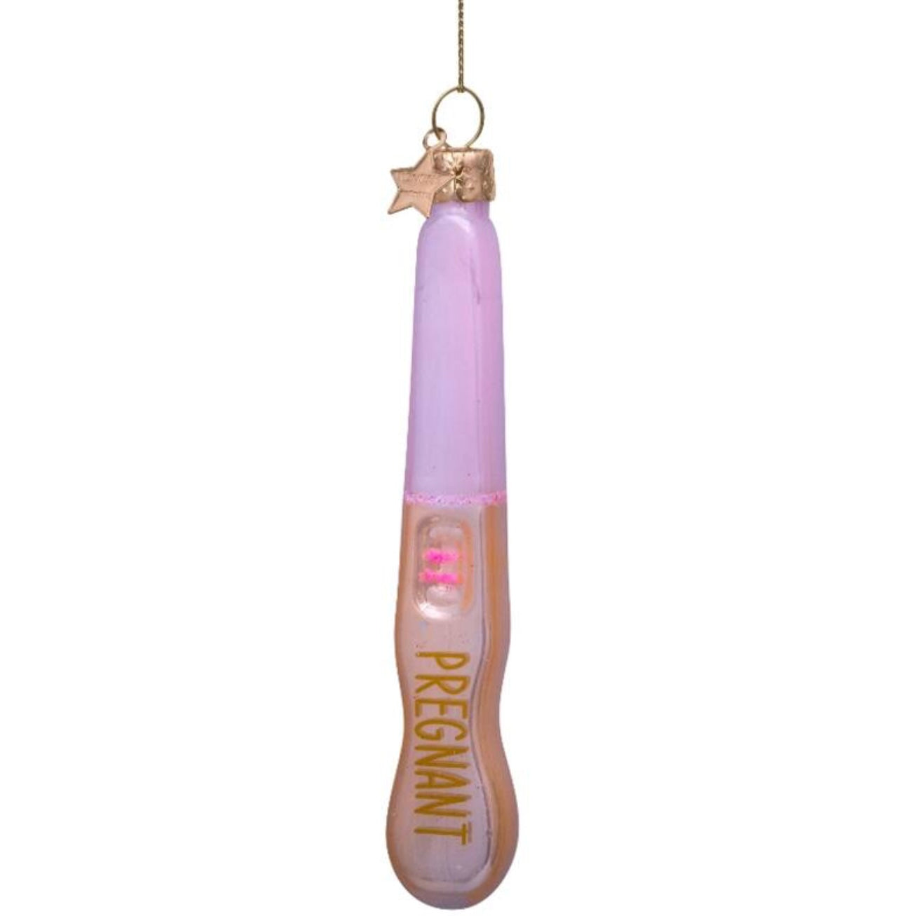Juletrepynt med graviditetstest til juletreet fra Vondels.