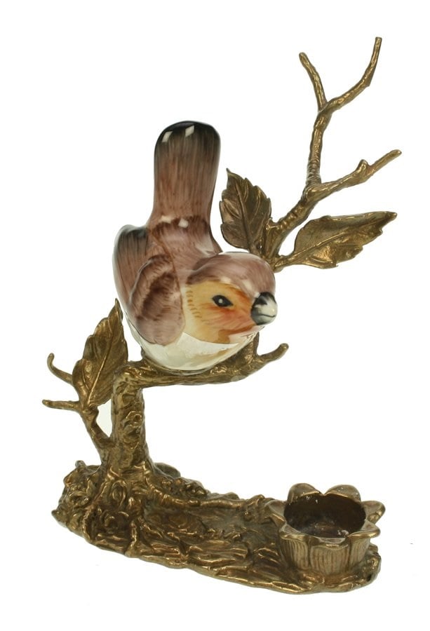 Sjarmerende fugl på kvist til kronelys fra vårt fantastiske leverandør i Nederland. Fuglen er håndlaget og måler 11,5 x 8 x 14 cm.