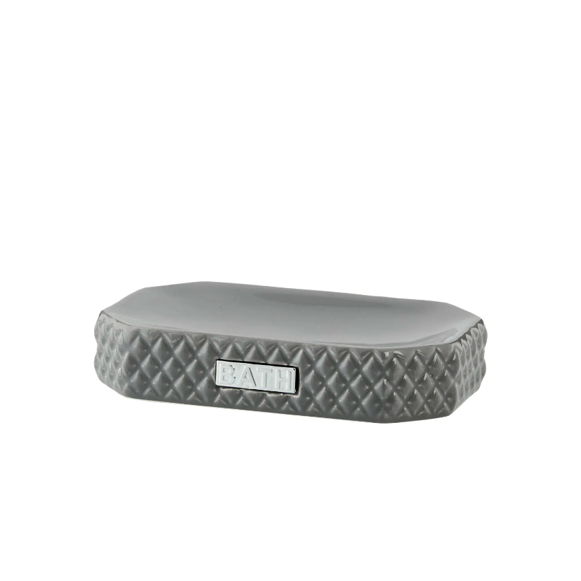 Marion såpeskål i keramikk med et Bath-merke. Såpeskålen er praktisk og dekorativ. Den er perfekt for oppbevaring av såpen på badet. Såpeskålen er en del av Marion-serien, som inneholder baderomstilbehør i et eksklusivt design som tilfører eleganse på badet.