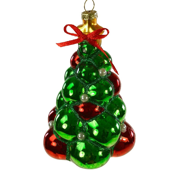 Juletre i rødt og grønt glass til juletreet i glass.