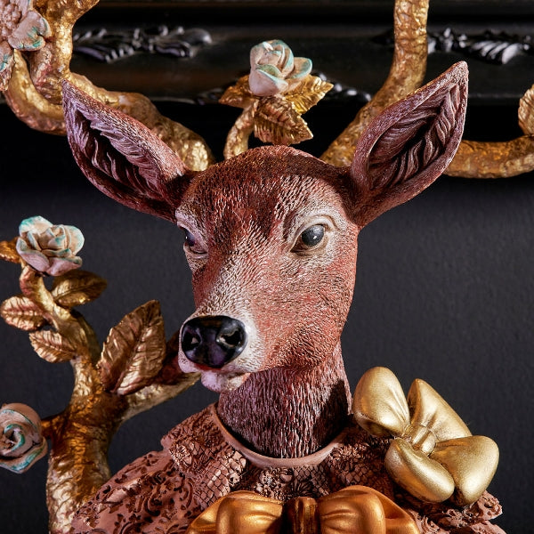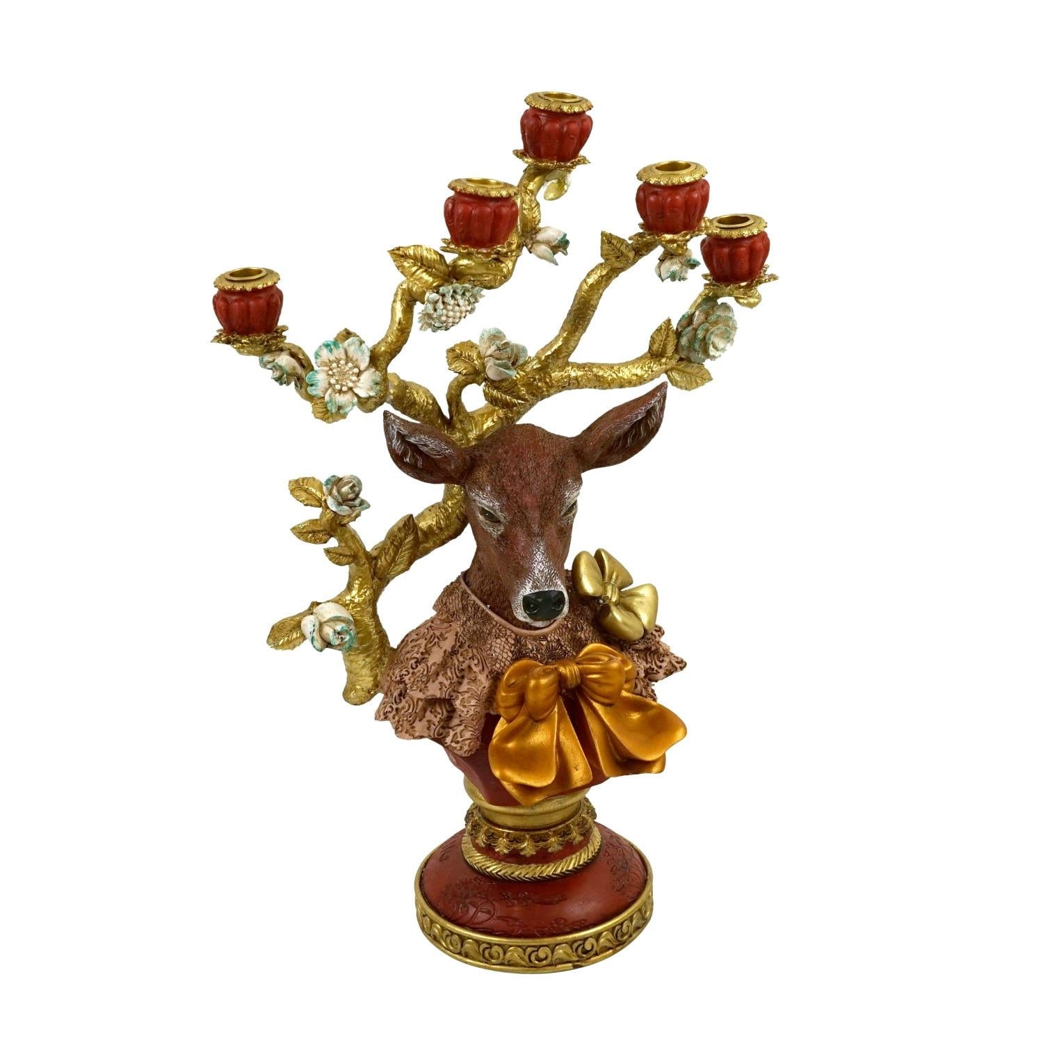 Unik og majestetisk lysestake formet som en hjort fra Werner Voss. Lysestaken har plass til hele 5 kronelys og er i lekker rød farge med gull detaljer. Flott til bordet og lekker på hytta eller hjemme.