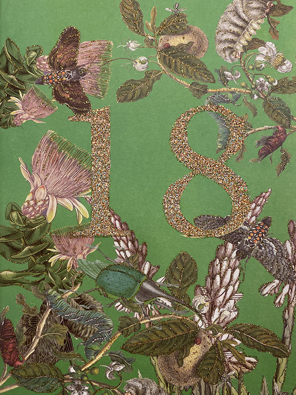 Dobbelt kort med konvolutt fra Vanilla Fly. Kortet har tallet 18 i glitter på forsiden og er blankt på innsiden. Perfekt for små og store anledninger.