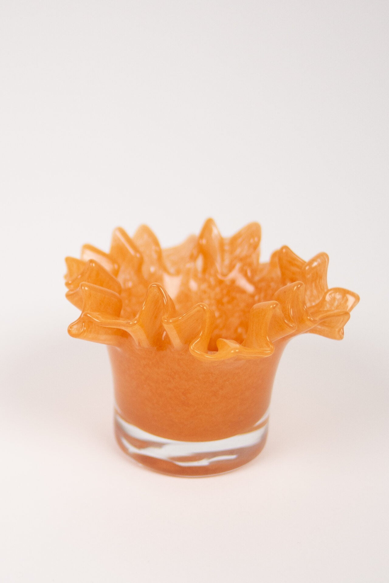En vakker, glad og leken telysholder som samtidig utstråler eleganse. Telysholderen er hndlaget i glass og det kan forekomme variasjoner i farge og form noe som gjør hvert produkt unikt.