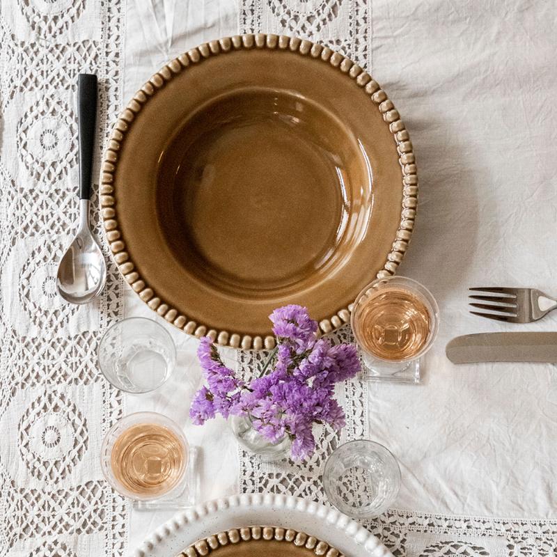 Lekker tallerken Daria Umbra fra PotteryJo som er håndlaget i Portugal av ovnsikkert steintøy. Tallerken er i lekker brun farge og tåler oppvaskmaskin, mikrobølgeovn og ovn.