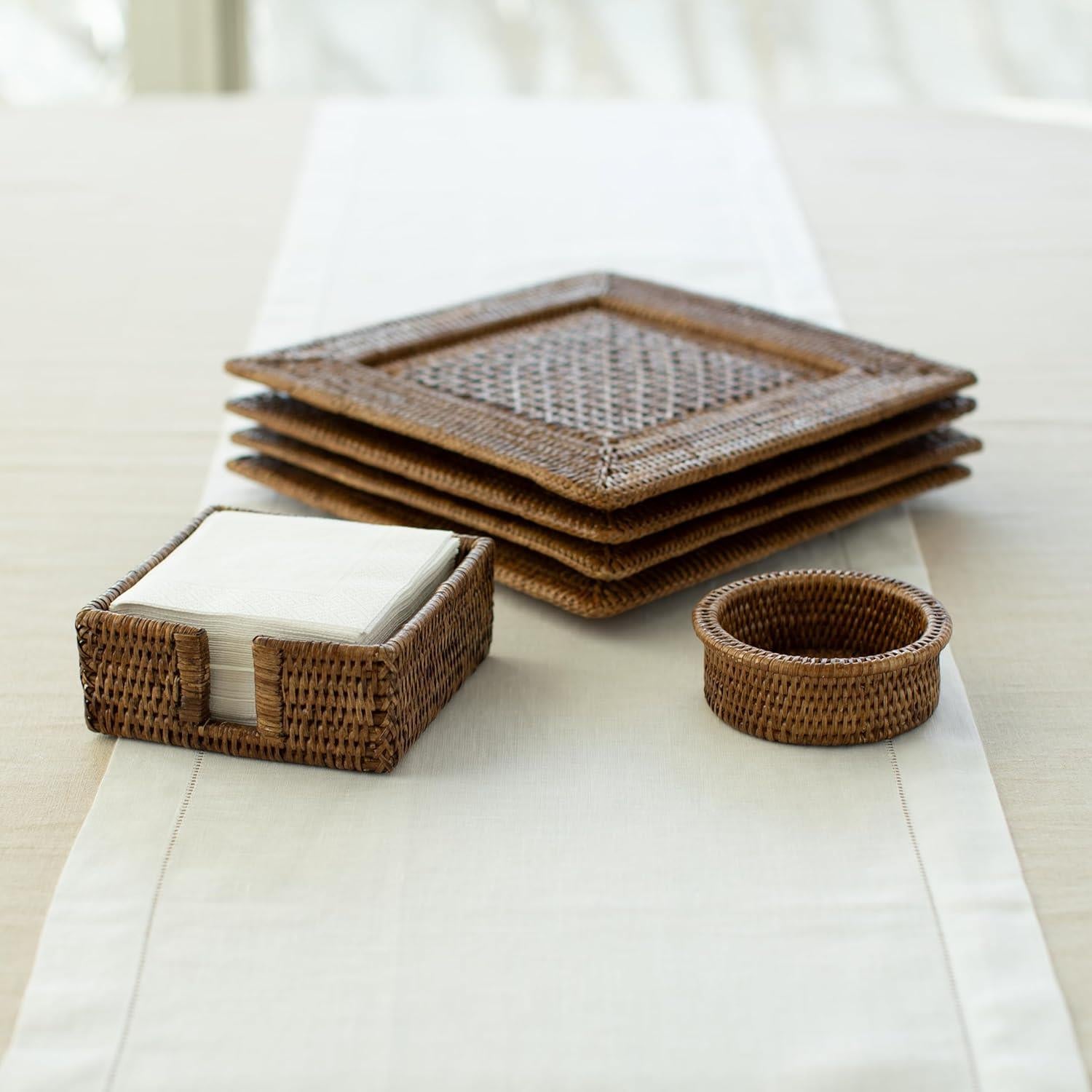 Elegant firkantet dekketallerken i mørk rotting fra Caspari. Den er håndlaget i solid og varig rotting som er vevd og lakkert i Myanmar.