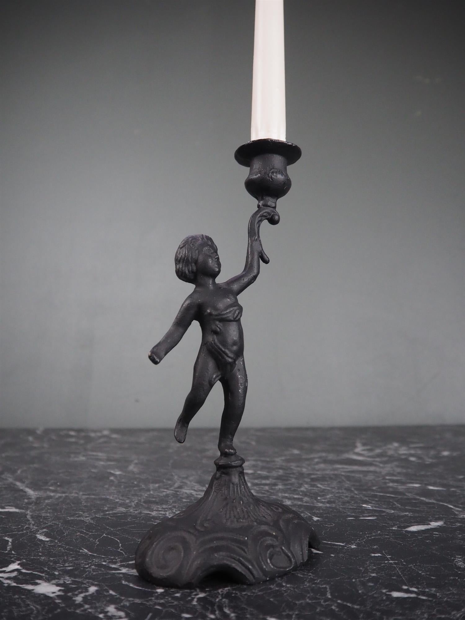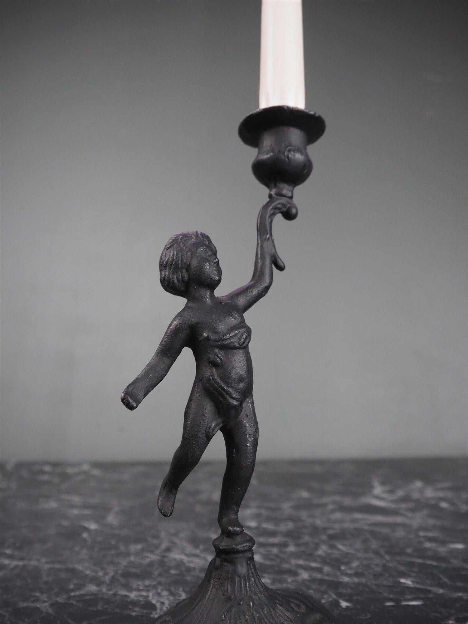 Vakker italiensk engel som holder kronelys i jern. Et smykke av en lysestake som er håndlaget på Filippinene.